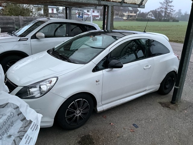 Wichtige HinweiseBereifungFahrzeug wird mit Winterräder abgegeben. Kategorie Das Fahrzeug wird vom Besitzer noch benutzt. BeschädigungenHeck Seitenwand hinten links eingedrückt/ausgestaucht. Achse Risiko Hinterachse. Sonstige Schäden Div.Carrosserie Teile sind leicht beschädigt. Lackierung matt [stumpf, beschädigt]. AusstattungSerienaustattung Elektrische Fensterheber vorne Zentralverriegelung mit Fernbedienung Kopfairbag Höhenverstellbarer Fahrersitz Staub- und Pollenfilter ABS/ EBV Elektr. Bremskraftverteilung CBC Kurvenbremskontrolle Airbag Fahrer und Beifahrerseite mit Seitenairbags vorne Sprachcode Deutsch/ Radio Kindersitz-Vorbereitung Isofix hinten Servolenkung geschwindigkeitsabhängig Pack Komfort Pack Elektro Lenksäule höhen- und längseinstellbar Aussenspiegel elektrisch verstellbar/ manuell anklappbar Rücksitzbank und -lehne umklappbar/teilbar Getönte Scheiben/ Wärmeschutzverglasung Geschwindigkeitsübertretungswarner Pack Safety/ inkl. Kopfairbag v+h Klimaanlage manuell Radio/ CD-Spieler CDR1 CD30 MP3 nicht C68/UWA Radiobedienung am Lenkrad/nicht mit WMB Stahlfelgen 15" 185/65 Deaktivierung Beifahrerairbag SLS Geradeausbremskontrolle Keine Gewähr auf die Angaben der Serienausstattungen SonderausstattungNebelscheinwerfer vorne Pack Raucher Doppelter Ladeboden Pack OPC-Line 1 |