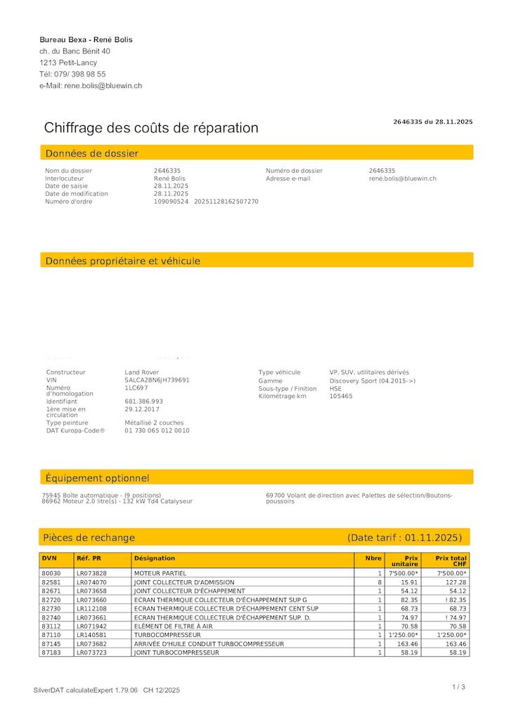 | Opis uszkodzen: | Moteur endommagé. Pastille sablage expulsée du bloque moteur. Turbo cassé. |