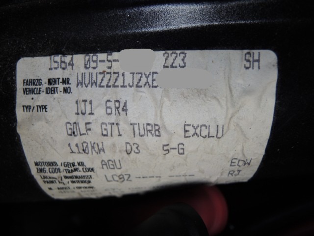 | Typ: | 1.8 20V Turbo 150 GTI | Moc: | 110 kW |