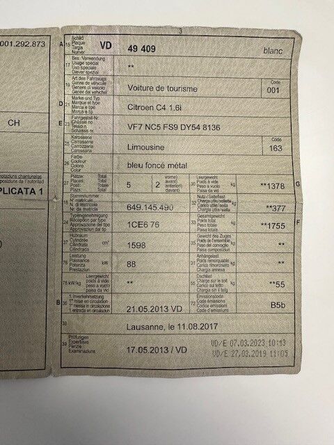 | Koszt naprawy: | 0.00 CHF |