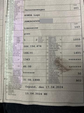 | VIN | JHMGA3450XS****** | Reifenprofil in %: | 40 |