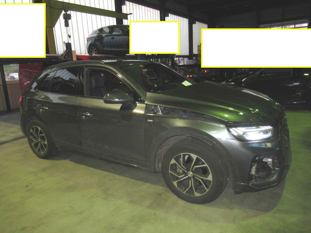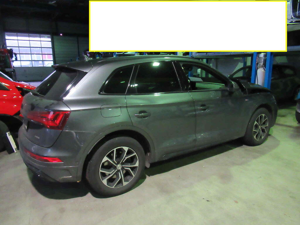 | Audi Q5 40 TDI S-Line Quattro mit 59000km und sehr guter Ausstattung. Luftfederung, 3 Zonen Klima, Keyless, Head-UP, Matrix LED, ACC, Sternenhimmel und AHK. Teillederausstattung Front und Heckschaden. Fahrzeug normal fahrbar, Motor und Getriebe I.O Aktive Motorhaube ausgelöst, Risiko AHK hinten aufgrund kleinen Auffahrunfalls. | |