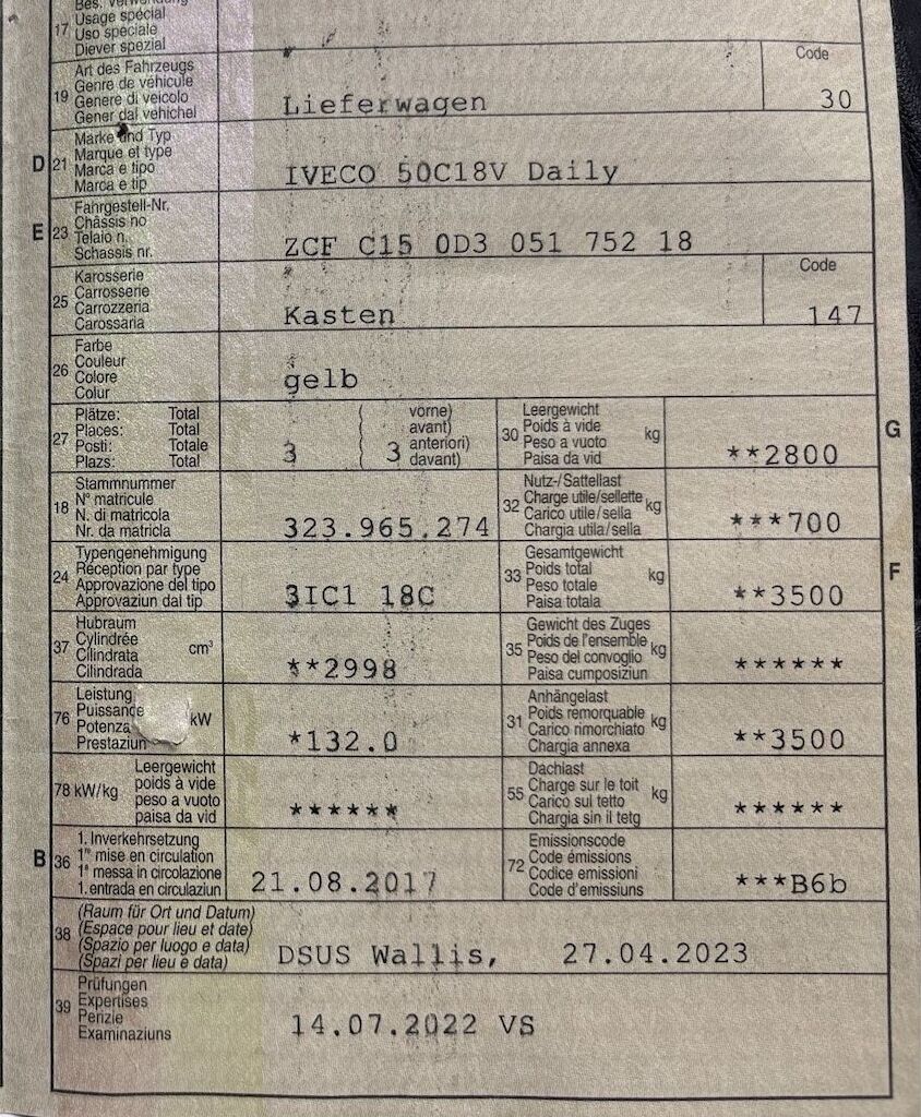| Das Fahrzeug wurde in unzerlegtem Zustand besichtigt. Es ist nur ein Schlüssel vorhanden. | |