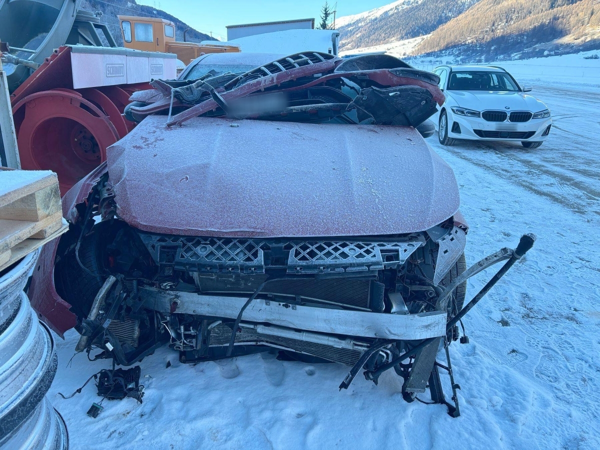 | Schadensbeschreibung | Kollisionsschaden Front mit Beschädigung von: Stossfänger, Motorhaube, Kotflügel rechts, Frontblech, Kühlerpaket, Längsträger rechts, Vorderachse, Lenkung, Airbag: Fahrer, Knie, Gurtstraffer. Risiko: Motor und Getriebe (Motor startet nicht, Ursache unbekannt) / Vorschäden: Gebrauchsspuren |