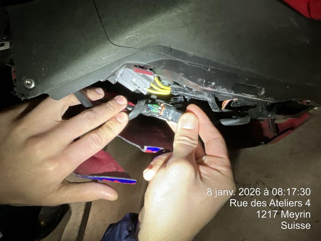 | Schadensbeschreibung | Beschreibung der Schäden: Moteur ne démarre pas Choc latg, carénages cassés Faiceau coupé, fourche et bras oscillant déformé |