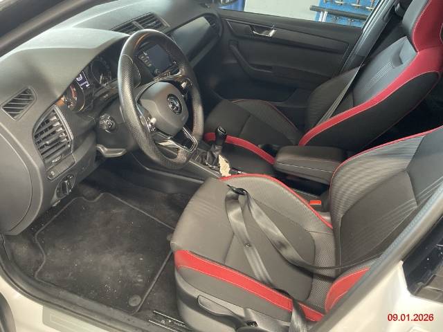 Türgriffe aussen in Wagenfarbe, Assist: Umfeldbeobachtung 'Front-Assist' mit City-Notbremsfunktion, Fahrwerk: Sportfahrwerk, Teppichfussmatten vorne und hinten, Elektronische Differentialsperre (XDS+), Dekor: Dekoreinlage Carbon Look, Sitze: Mittelarmlehne vorne, Airbag: Seitenairbags, 12-Volt-Steckdose vorne, Antriebsschlupfregelung (ASR), Wegfahrsperre elektronisch, Verzurrösen, Sitze: 3 Kopfstützen hinten, Media: 6 Lautsprecher, Fussgängerschutz, Befestigungsösen im Laderaum, Scheibenwischer vorne mit Intervall, Getönte Scheiben, Räder: Reifendruckkontrollsystem, Sitze: Sportsitze vorne - Kombination aus Carbon Optik Leder, hochwertigen Materialien und Stoff schwarz/rot, Nichtraucherausführung, Leseleuchten vorne, Airbag: Airbag Beifahrer deaktivierbar, Servolenkung, 3-Punkt-Sicherheitsgurte auf allen Plätzen, Panoramaglasdach mit Sonnenrollo, SKODA Garantie: Garantie 3 Jahre gegen Lackschäden (ab 1. Inv.), Wärmeschutzverglasung, Assist: Rain Light Assist (automatische Lichtschaltung, Coming Home, Leaving Home, Regensensor, Innenspiegel automatisch abblendbar, Tunnel Light), für Tagfahrlicht, Dekoreinlagen, ABS, EBD elektronische Bremskraftverteilung, SKODA Garantie: Garantie 2 Jahre ohne Kilometerbegrenzung (ab 1. Inv.), Kühlergrill schwarz, Sonnenblende rechts, Ablagen in den Türen, Multikollisionsbremse, Airbag: Window-Kopfairbags, Cupholder vorne, Laderaumabdeckung, Höhenverstellbare Gurten vorne, Assist: Parksensoren hinten, Make up-Spiegel rechts, Sitze: Vordersitze höhenverstellbar, Media: DAB+ (Digital Audio Broadcasting), Gurtstraffer vorne, Licht: LED Heckleuchten, Media: Radio SWING mit 6.5'' Farb-Touchscreen, USB-Anschluss, Assist: Berganfahrassistent, Elektrische Fensterheber vorne + hinten, Räder: Leichtmetallräder TORINO 7x17J 215/40R17, Kennzeichenbeleuchtung in LED, Lenkrad längs- und höhenverstellbar, Polster: Stoff-Ausstattung, Ablagefach im Kofferraum, Media: Komplette Telefonvorbereitung mit Bluetooth, Elektronisches Stabilitäts-Programm (ESP), Dachhimmel schwarz, Komfortblinker, Licht: Halogen-Projektscheinwerfer und LED Tagfahrlicht, Assist: Kollisionswarnung, Zentralverriegelung mit Funkfernbedienung (2 klappbare Schlüssel), SKODA Garantie: Garantie 12 Jahre gegen Durchrostungs (ab 1. Inv.), Drittes Bremslicht, Katalysator geregelt, Heckscheibenheizung, ISOFIX-Befestigungspunkte für Kindersitz an den äusseren Rücksitzen, Bremsenergie-Rückgewinnung, Leseleuchten hinten, Start/Stop-Funktion, Airbag: Airbag Fahrer und Beifahrer, Gepäcknetze an beiden Vordersitzen, Pollenfilter (Staubfilter), Flaschenhalterungen hinten, Sitze: Rücksitzlehne geteilt abklappbar, Regenschirm, Maxi-DOT Display, Licht: Nebelscheinwerfer, Assist: Geschwindigkeitsregelanlage (Tempomat), Nebelschlussleuchte, Dunkel getönte Scheiben (SunSet), Make up-Spiegel links, Klima: Klimatisierungsautomatik Climatronic, Heckscheiben-Wisch-/Waschanlage, Einstiegsschienen mit Logo, Sonnenblende links, Aussenspiegel rechts und links beheizbar und elektrisch verstellbar, Aussenspiegel in schwarz glänzend und Türgriffe in Wagenfarbe, Bremsassistent (BAS)