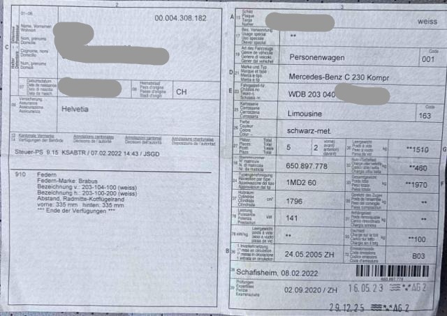 | Sonderausstattung: | 11940 CHF | Reparaturkosten: | 7927 CHF |