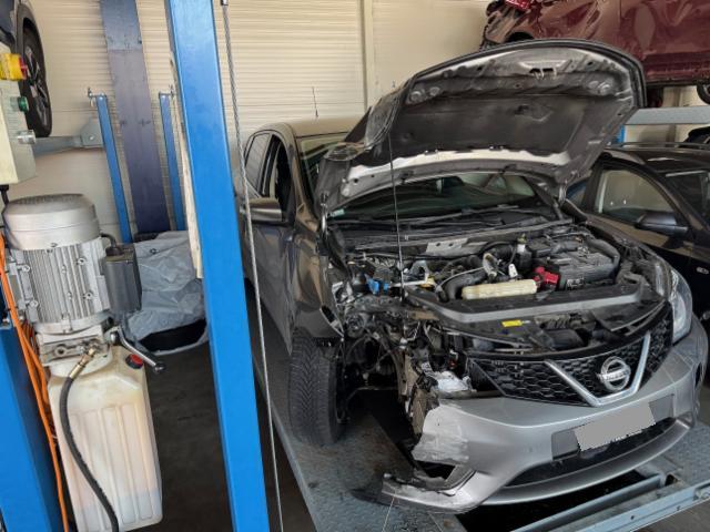 Wichtige HinweiseZustandFahrzeug ist NICHT fahrbar. Fahrzeug ist NICHT rollbar. Bereifung Fahrzeug wird mit Winterräder abgegeben. Schlüssel Nur ein Schlüssel vorhanden. BeschädigungenFront Front eingedrückt. Front rechts eingedrückt. Kotflügel vorne rechts eingedrückt. Motorhaube eingedrückt. Frontblech/Maskenblech eingedrückt. Radhaus vorne rechts eingedrückt / gestaucht. Längsträger vorne rechts gestaucht. Achse Vorderachse ist beschädigt. Aufhängungsteile vorne rechts beschädigt. Risiko Lenkung. AusstattungSerienaustattung Airbag Fahrer und Beifahrerseite Aussenspiegel elektrisch verstellbar ESP Elektronisches Stabilitätsprogramm Nebelscheinwerfer Lederlenkrad Mittelarmlehne hinten Innenspiegel automatisch abblendbar Kopfairbag vorne und hinten Sitzbezüge in Teilleder Intelligent Key-System Leichtmetallfelgen 17" Zwei Zonen-Klimaautomatik Seitenairbags vorne Tempomat mit Geschwindigkeitsbegrenzer Mittelarmlehne vorne verstellbar ABS/ EBD Regensensor für Frontwischer Isofix-Kindersitzbefestigung hinten Abgedunkelte Scheiben ab B-Säule Bluetooth Interface/ Schnittstelle Reifen-Reparatur Set Aussenspiegel beheizbar Stop + Start System Details siehe gültige Preisliste des Importeurs Keine Gewähr auf die Angaben der Serienausstattungen Radio/ CD mit AUX und USB Notbrems-Assistent Navigation Nissan Connect SonderausstattungMetallic-Lackierung Pack Technology |