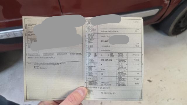 | Sonderausstattung: | 820 CHF | Reparaturkosten: | 6606 CHF |