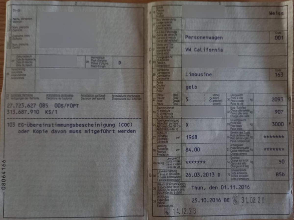 | Fahrzeugausweis | Vorhanden |