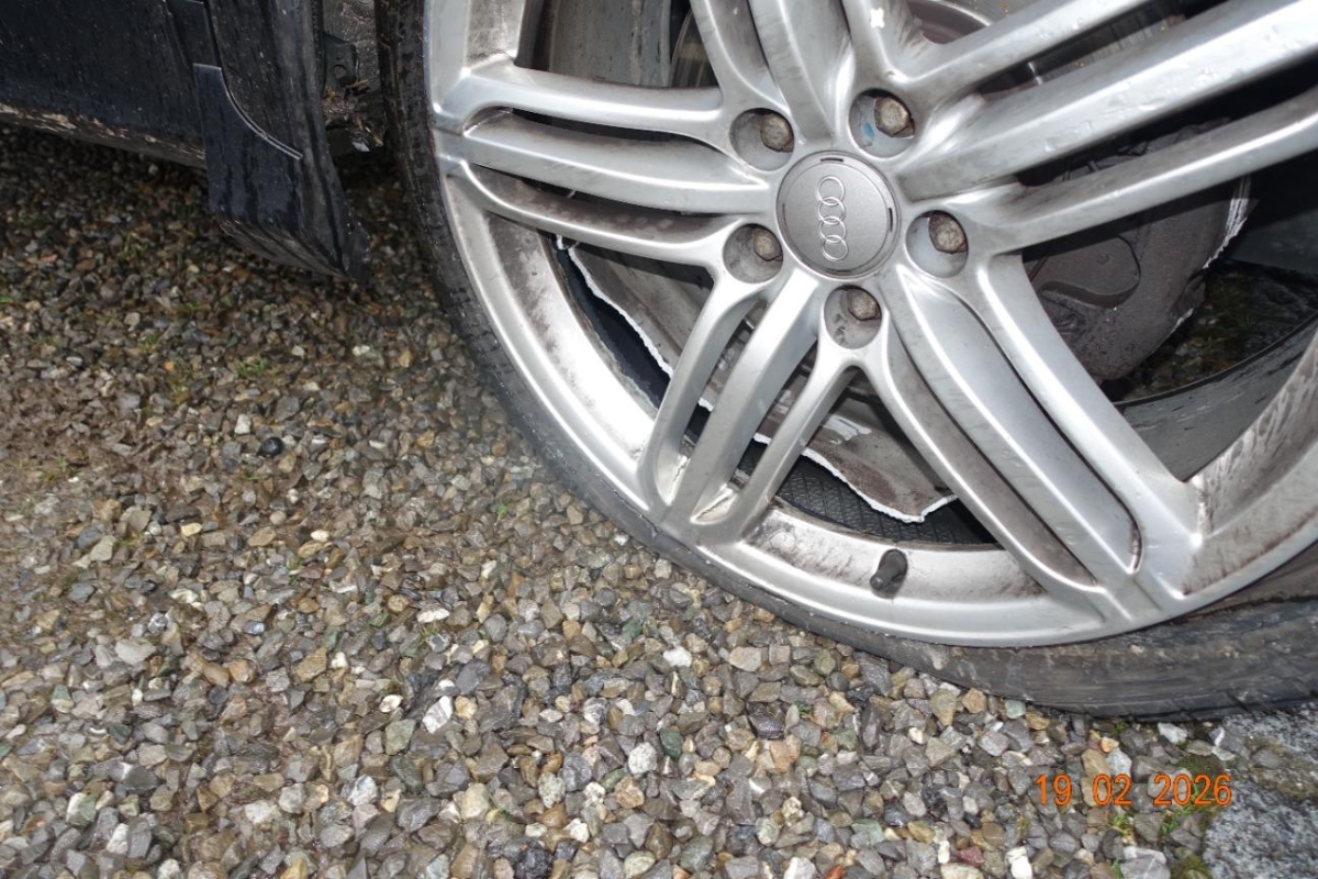 Diverse Anbauteile, Diverse Gebrauchspuren, Federbein vorne rechts, Front rechts, Hinterachse, Kotflügel rechts, Lenkung, Rad hinten links, Rad vorne rechts, Radaufhängung hinten links, Radaufhängung vorne rechts, Seite links, Seitenwand links, Stosstange vorne, Türe hinten links, Vorderachse, Wagenboden