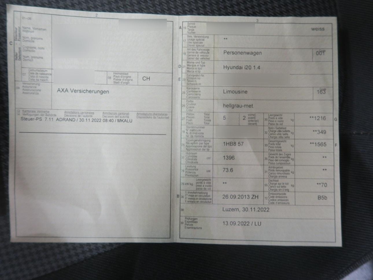 | Fahrzeugausweis | Vorhanden |