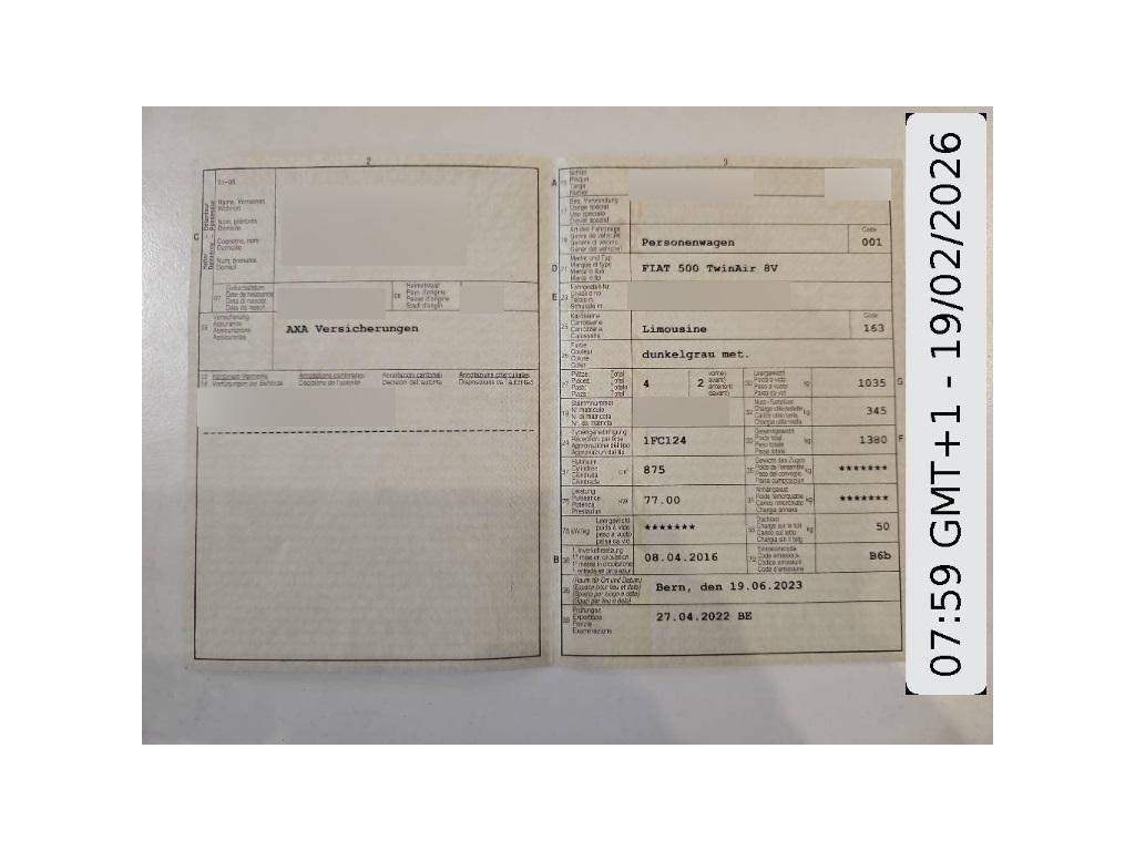 | Fahrzeugausweis | Vorhanden |