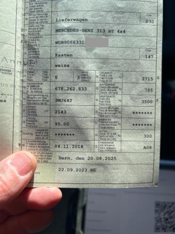 Wichtige HinweiseBeschädigungenInnenraum Innenraum ungepflegt. Starke Verschmutzung im Innenraum. Sonstige Schäden Div.Carrosserie Teile sind leicht beschädigt. Div. Roststellen am Fahrzeug. Hagel Hagelschaden mittel. AusstattungSerienaustattung Airbag Fahrerseite Elektrische Fensterheber vorne Aussenspiegel elektrisch verstellbar und beheizbar Servolenkung Schiebetüre rechts Elektronische Wegfahrsperre Zentralverriegelung mit Fernbedienung Lenkrad verstellbar ESP Elektronisches Stabilitätsprogramm Holzboden im Laderaum Dieselpartikelfilter Wärmeschutzverglasung Elektronische Bremskraftverteilung EBV ABS + ASR Handschuhfach abschliessbar Warmluft-Zusatzheizung elektrisch Kindersitz- Vorbereitung ISOFIX/ 2-er Sitzbank Kindersitz- Vorbereitung ISOFIX/ 3-er Sitzbank Komfort-Fahrersitz Beifahrersitz Zweisitzer Laderaum-Verkleidung/ Hartfaser Blue EFFICIENCY Keine Gewähr auf die Angaben der Serienausstattungen Radio Audio 10 SonderausstattungTempomat Aussentemperaturanzeige Treibstofftank 100 Liter Fenster fix im Laderaum vorne links 3er Sitzbank schmale Ausführung 1. Reihe Fenster fix im Laderaum vorne rechts Anfahrhilfe für manuelles Getriebe Parktronic-System PTS Warmwasser-Zusatzheizung inkl. Zeitschaltuhr Klimaanlage geregelt/ Tempmatik Bodengruppe Kombi Fenster in Heckdrehtür Befestigungschienen für Dachträger |
