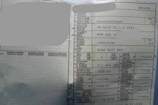 | Pierwsza rejestracja: | Leergewicht in kg | Pojemność silnika: | 17.09.2009 |