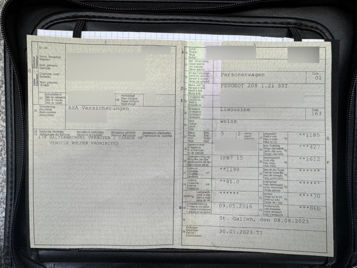 | Fahrzeugausweis | Vorhanden |