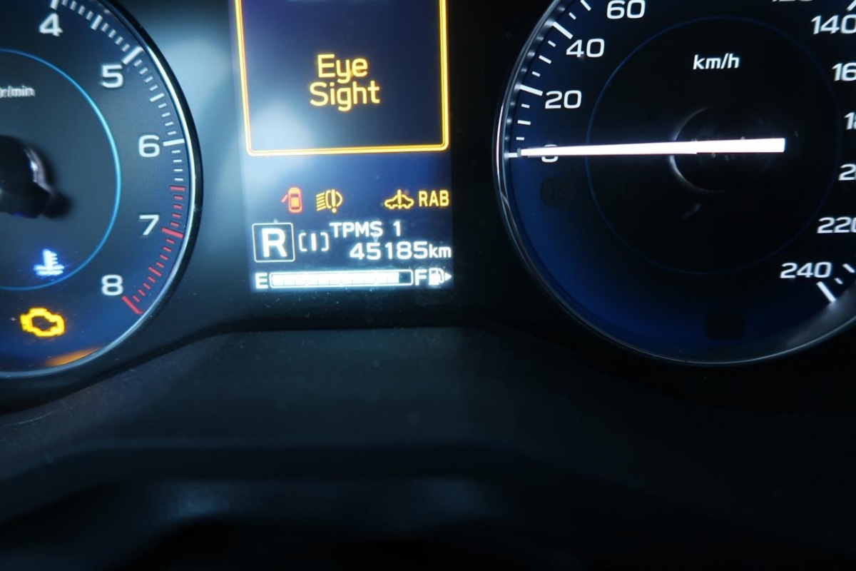 Räder: Reifendruck-Kontrollanzeige, Assist: Bremsassistent (BAS), Airbag: Seitenairbag für Fahrer und Beifahrer, Räder: Reifenreparatur-Set (Tire Fit), Lackierung: Uni-Lackierung, Klima: Fussheizung (vorne, hinten), 12-Volt-Steckdose vorne, Gurtkraftbegrenzer vorne und hinten, Kopfstützen hinten höhenverstellbar, ISOFIX Kindersitzvorrichtung, Media: Bluetooth-Freisprechanlage mit Spracherkennung (Apple CarPlay / Google Android Auto), ABS, EBD elektronische Bremskraftverteilung, Wegfahrsperre elektronisch, Katalysator geregelt, Scheibenwischer-Enteiser, Zentralverriegelung mit Fernbedienung, Assist: Bergabfahrhilfe (DAC), Polster: Stoff-Ausstattung, Licht: LED-Scheinwerfer mit Kurvenlicht, Media: USB+AUX-Anschluss, Assist: EyeSight Fahrerassistenz-System: Adapt.Tempomat,Spurhalte-,Spurleit-,Not- brems-,Kollisionschutz-,Anfahr-/Assisten, Licht: Fernlicht-Assistent, Pollenfilter (Staubfilter), Lenkrad: Multifunktionslenkrad, Aussentemperaturanzeige, Assist: Frontkamera, Garantie: Subaru Garantie 3 Jahre oder 100'000 km (ab 1. Inv.), Elektronisches Stabiliäts-Programm (VDC), Wärmeschutzverglasung, Media: Navigationssystem, Dachreling, Blinker in Aussenspiegel, Stopp-/Start-System, Assist: Totwinkel-Assistent, Getriebe: 7-Stufen-Automat CVT sequentiell, Licht: Nebelschlussleuchte, Servolenkung, Scheinwerfer-Waschanlage, Rundumaufprallschutz, Assist: Park Distance Control hinten, Licht: Drittes Bremslicht, Dachantenne (Haifischflosse), SI-Drive-System, Aussenspiegel rechts und links beheizt, elektrisch verstell- / und einklappbar, Heckscheibenheizung, Scheibenwischer vorne mit Intervall, Sitze: Vordersitze heizbar, Sitze: Rücksitzlehnen zweiteilig umklappbar (60/40), Gurtstraffer vorne und hinten, 12-Volt-Steckdose hinten, Assist: Rückfahr-Querverkehrswarner (RCTA), Bordcomputer, Assist: Berganfahrhilfe (Hill Holder), Steckdose im Kofferraum, Tageskilometerzähler, Pedalerie mit Aluminiumauflage, Media: Radio-CD-Gerät mit MP3-/WMA-Leser, DAB+, 6 Lautsprechern und 8'-Touchscreen, Innenspiegel automatisch abblendbar, Garantie: Subaru Garantie 12 Jahre Garantie gegen Durchrostung, Elektrische Fensterheber vorne + hinten, Tankdeckel-Entriegelung von innen, Lenkrad: Lenkrad und Schalthebelgriff in Leder, Airbag: Knie-Airbag für Fahrer, Assist: Rückfahrkamera mit Monitor, Abgedunkelte Seiten- und Heckscheibe, Airbag: Airbag Fahrer und Beifahrer, Garantie: Garantie Lithium-Ionen-Batterie: 8 Jahre oder 160 000 km, Pedal Release System Auskuppelnde Sicherheitspedale PRS, Heckscheiben-Wisch-/Waschanlage mit Intervall, Cupholder, Licht: Nebelscheinwerfer, Allradantrieb permanent, Airbag: Window-Kopfairbags, Multifunktionsdisplay, Aktive Kopfstützen, Räder: Leichtmetallfelgen 7Jx18 225/55R18 ET55, Licht: LED-Tagfahrlicht, Sitze: Beifahrersitz neigungsverstellbar, Lenkrad: Lenkrad-Wippschaltung (Paddles), 3-Punkt-Sicherheitsgurte auf allen Plätzen, Keyless Entry / -Start, Klima: 2-Zonen-Klimaautomatik, Sitze: Fahrersitzhöhen- und Neigungsverstellung, Lenkrad: Lenkrad längs- und höhenverstellbar, Laderaumabdeckung, Digital Uhr, X-MODE (2 Modi: SNOW/DIRT und SNOW/MUD), Drehzahlmesser, Kopfstützen vorne höhenverstellbar, Gurtkontrolle, Assist: Berganfahrhilfe (Hill Assist Control - HAC), Licht- und Regensensor, Assist: Automatische Rückwärtsfahrbremse