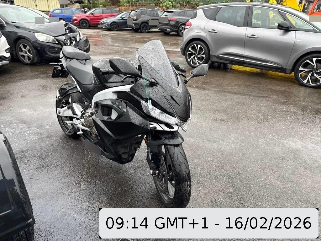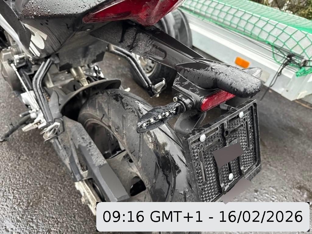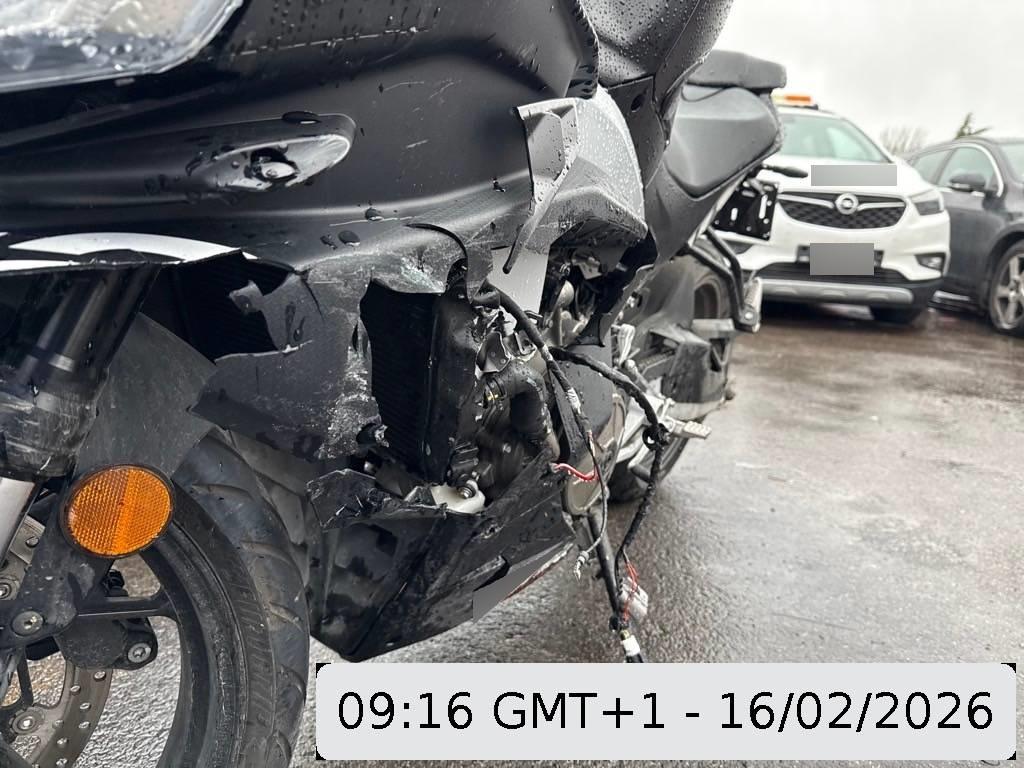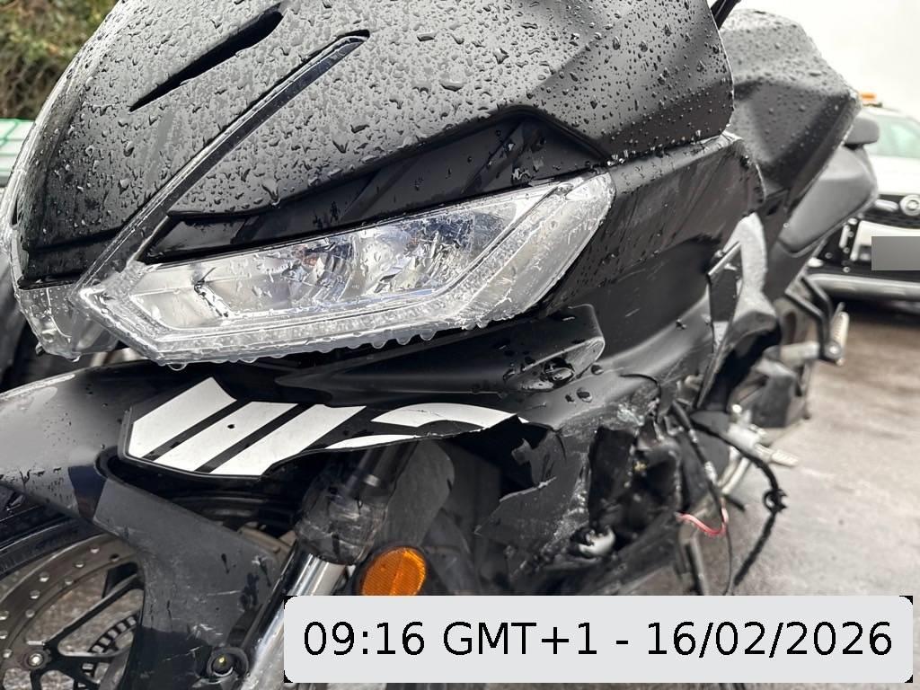 Aussenspiegel links, Front, Fussraster links, Gabelholm, Griff links, Heckverkleidung, Kabelstrang, Kupplungsgehäuse, Kühler, Lenker, Rahmen, Rücklicht links, Scheinwerfer, Schutzblech vorne, Seite links, Tank, Verschalungen links, Verschalungen vorne, Windschutzscheibe