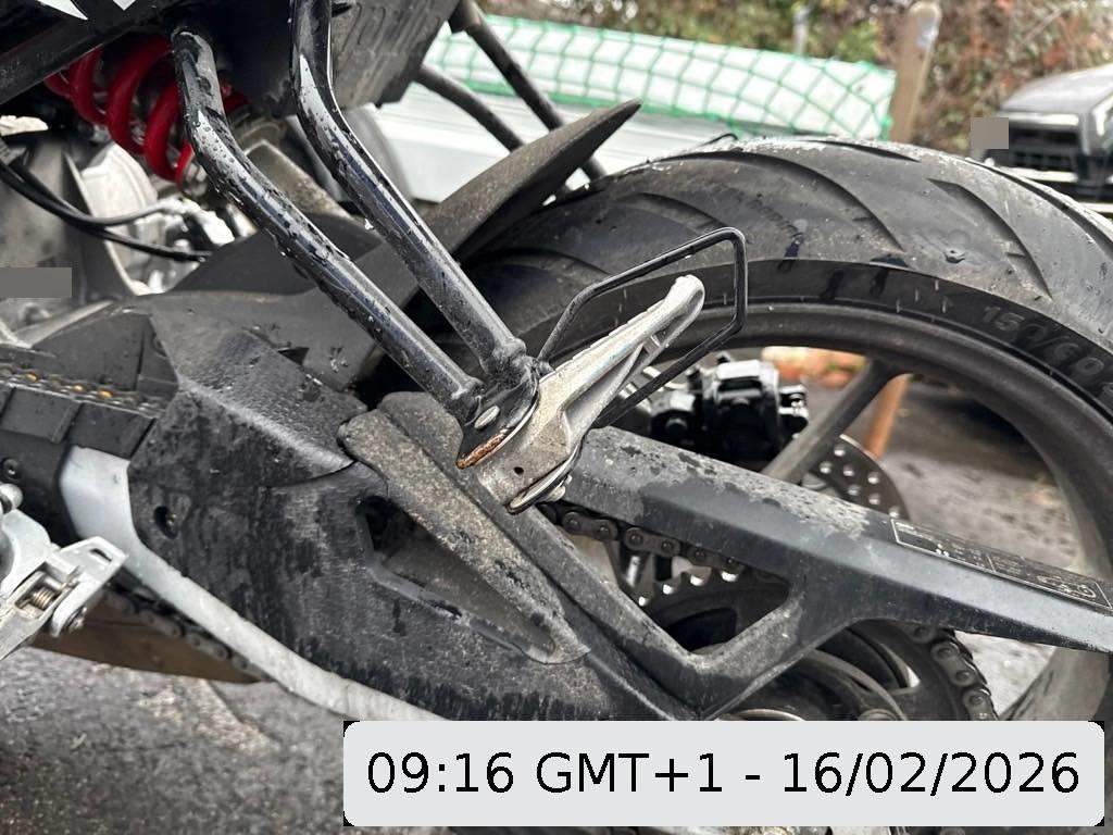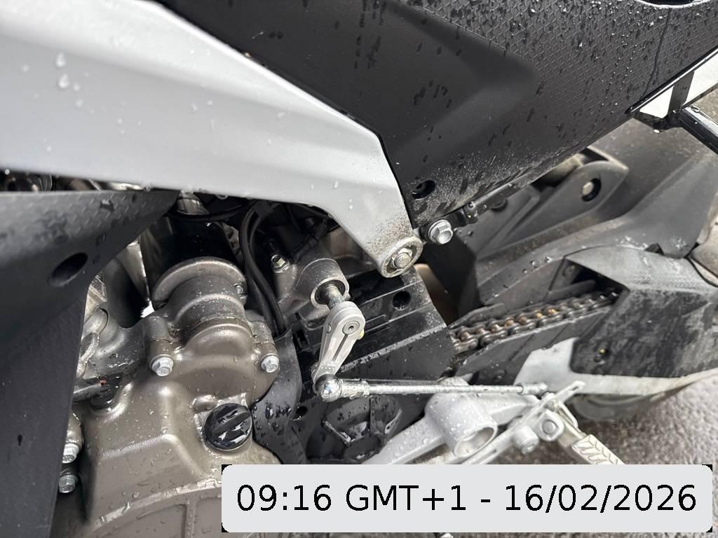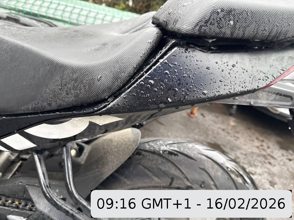 Armaturen, Auspuffkollektor, Auspufftopf, Aussenspiegel rechts, Fussraster rechts, Getriebe, Griff links, Heck, Heckverkleidung, Lenkanschlag, Lenkschloss, Motor, Motorgehäuse, Rad hinten, Rad vorne, Rücklicht, Schutzblech hinten, Schwinge, Seite rechts, Sitz, Verschalungen rechts, Zündschloss