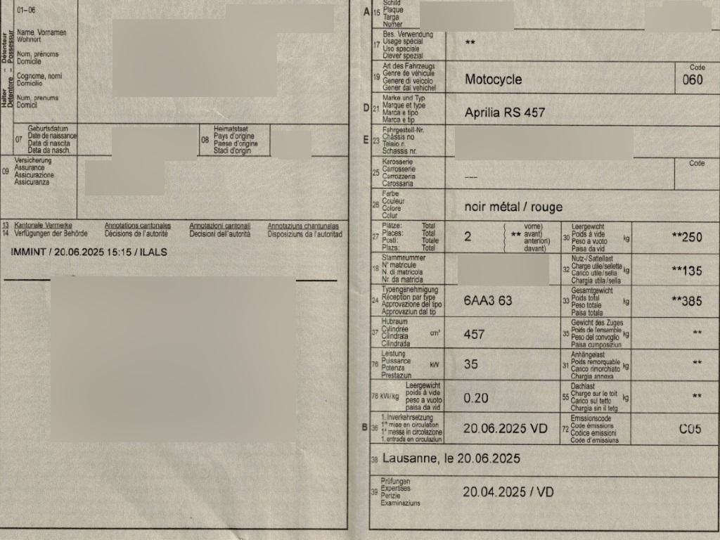 | Fahrzeugausweis | Vorhanden |