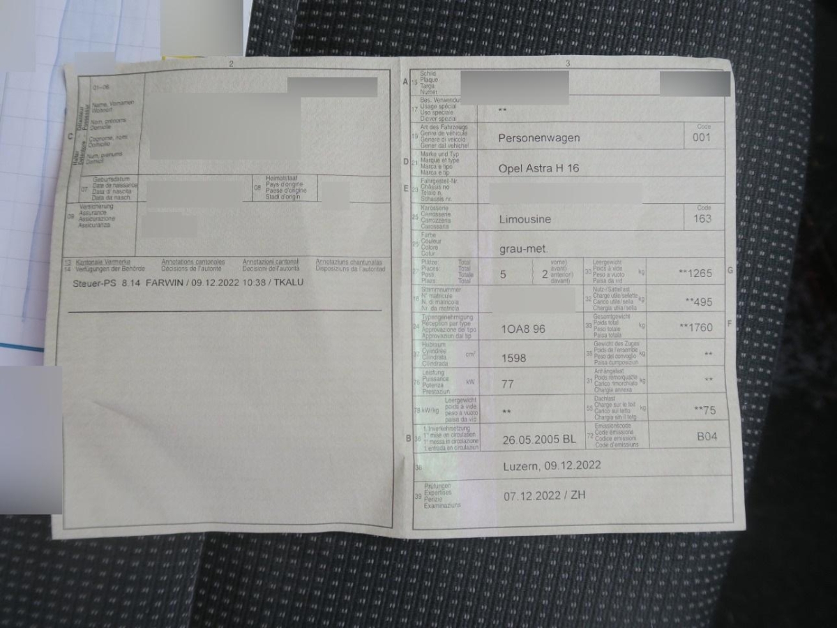 | Fahrzeugausweis | Vorhanden |