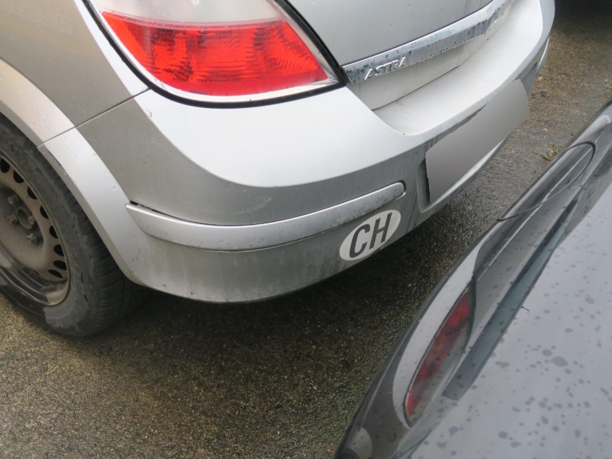 Das Fahrzeug hat rundum kleine Dellen, Beulen und Lackschäden, Diverse Gebrauchsspuren, Stossstange hinten, Stosstange vorne