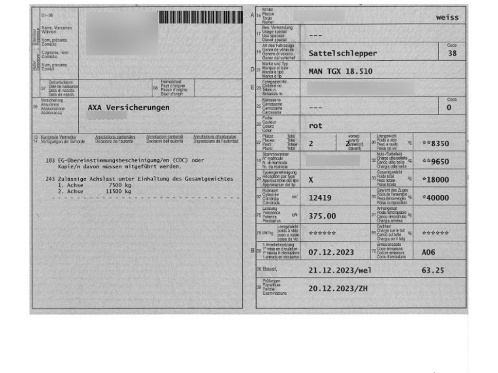 | Fahrzeugausweis | Vorhanden |