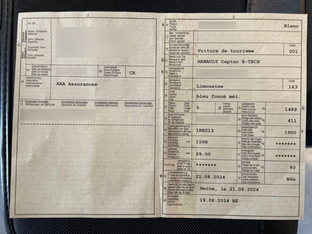 | Fahrzeugausweis | Vorhanden |