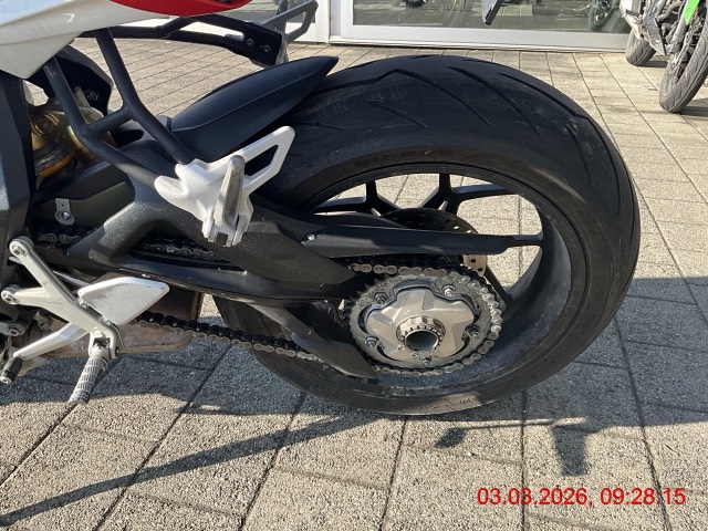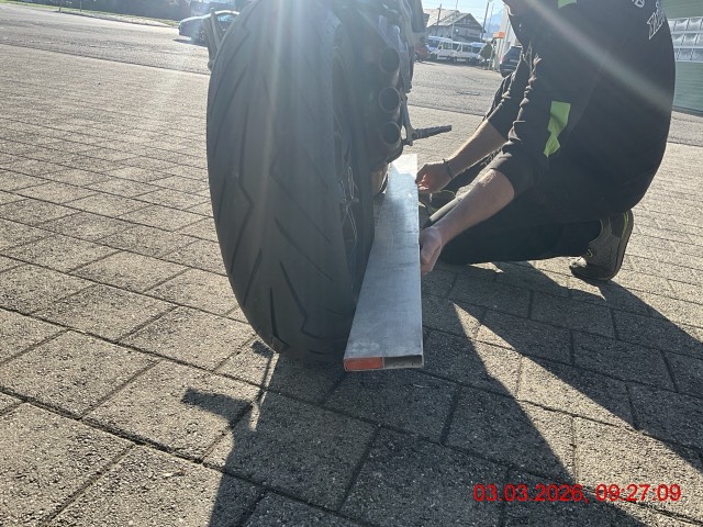 | Schadensbeschreibung | Beschreibung der Schäden: Lenkeranschlag vorne links gebrochen. Lenker, Tank, Seitenverkleidung rechts, Hinterachsschwinge deformiert. Motor läuft noch jedoch Spannungsversorgung zu niedrig. |