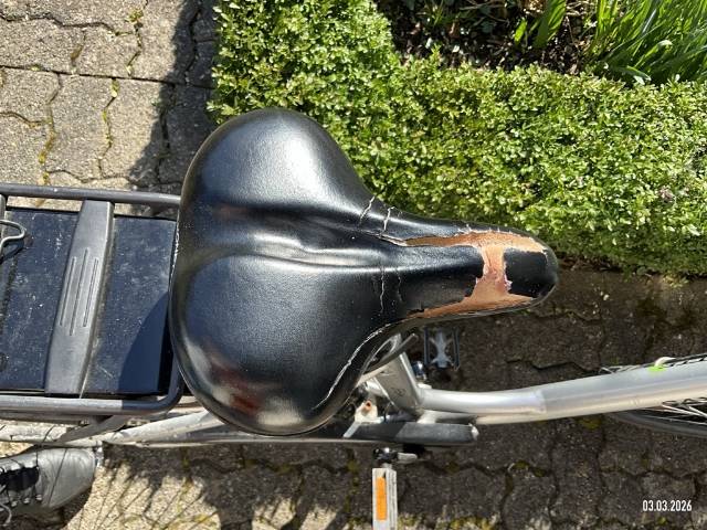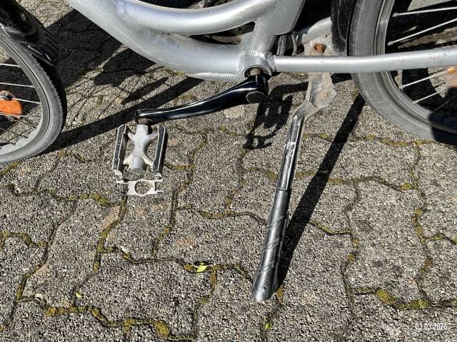 | Schadensbeschreibung | Beschreibung der Schäden: Schaden: Gabel V verzogen, Rahmen vorn verzogen, Schutzblech vorn verzogen, Bremshebel V+H zerkratzt, Pedale L gebrochen, AUFZÄHLUNG NICHT ABSCHLIESSEND Vorschaden: Sattel gerissen, Gebrauchsspuren |
