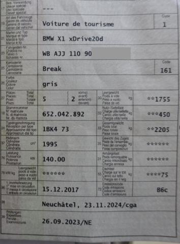 Wichtige HinweiseZustandFahrzeug ist NICHT fahrbar. Schlüssel Nur ein Schlüssel vorhanden. BeschädigungenFront Front links eingedrückt. Längsträger vorne links gestaucht. Motor Risiko Motor. Alle Kühler vorne sind eingedrückt. Motorstörung: Warnleuchte aktiv Achse Vorderachse ist beschädigt. Lenkgetriebe ist beschädigt. Motoraufhängung/Aggregateträger ist beschädigt. Innenraum Fahrerairbag ausgelöst. Beifahrerairbag ausgelöst. Gurtstraffer ausgelöst. Starke Verschmutzung im Innenraum. Glas Windschutzscheibe ist gerissen. Sonstige Schäden Beschädigungen Div.Carrosserie Teile sind leicht beschädigt. AusstattungSerienaustattung Klimaanlage inkl. Mikrofilter Fahrer und Beifahrer-Airbag Seitenairbag für Fahrer und Beifahrer Reifendruck-Kontrollsystem RDC Elektrische Fensterheber Aussenspiegel elektrisch verstellbar und heizbar Armauflage vorn Regensensor Nebelscheinwerfer vorne Dynamische Stabilitäts-Control DSC Antiblockiersystem ABS Servotronic Pack Ablage Kindersitzbefestigung Isofix Bordcomputer Multifunktions-Lenkrad Kopfairbags vorne + hinten Dynamische Traktions-Control DTC Dieselpartikelfilter Lenksäule mit Höhen- und Längseinstellung Digital audio DAB-Tuner Auto Start Stopp Funktion Rücksitzlehne geteilt umklappbar 40/20/40 Dachreling schwarz Details siehe gültige Preisliste des Importeurs Freisprecheinrichtung mit USB-Schnittstelle Keine Gewähr auf die Angaben der Serienausstattungen ConnectedDrive Services Interieurleisten oxidsilber matt BMW Service Plus 10 Jahre/ 100'000 km Leichtmetallräder V-Speiche 560 Aufmerksamkeitsassistent SonderausstattungDiebstahlwarnanlage Sitzheizung für Fahrer und Beifahrer Innenspiegel automatisch abblendbar Innen- und Aussenspiegel automatisch abblendbar Sonnenschutzverglasung Metallic-Lackierung CD-Laufwerk 12 V Steckdose HiFi-Lautsprechersystem Park Distance Control PDC vorn und hinten Head-Up Display Interieurleisten Aluminium Längsschliff fein Rückfahrkamera Aktive Geschwindigkeitsregelung mit Stop&Go Funktion Heckgepäckträger-Vorbereitung Pack Aussenspiegel Dynamische Dämpfer Control Parkassistent Real Time Traffic Information Concierge Service Remote Services Stauassistent Navigationssystem Plus LED-Scheinwerfer mit erweiterten Umfängen Sitzverstellung im Fond Driving Assistant Plus Ausstattung Leichtmetall-Felgen Rückfahrsensoren Metallic-Lackierung |
