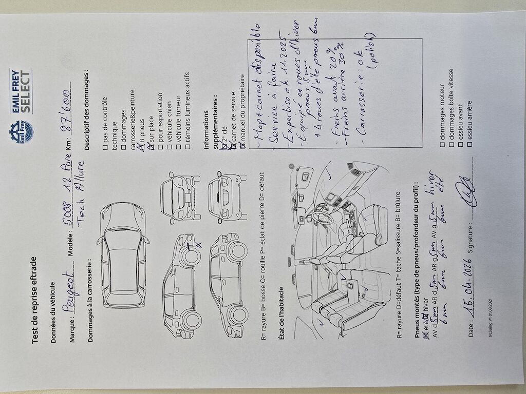 | 2 clés Map + carnet de service disponible Service entretien à faire Expertise ok 18.04.2025 Equipé en roues d'hiver pneus 5 mm + 4 roues d'été pneus 6 mm Freins avant 20 % Freins arrière 30 % Carrosserie : moulure plastique avant droite Pas de contrôle technique (essai en route) effectué 2 Schlüssel Fahrtenbuch und Wartungsheft vorhanden Wartung fällig MFK bestanden am 18.04.2025 Ausgestattet mit Winterrädern, Reifenprofil 5 mm + 4 Sommerräder mit 6 mm Profiltiefe Vorderradbremsen 20 % Hinterradbremsen 30 % Karosserie: Kunststoffleiste vorne rechts Keine technische Überprüfung (Fahrprobe) durchgeführt | |