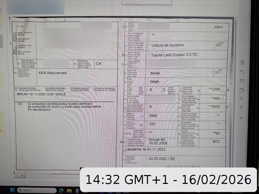 | Fahrzeugausweis | Vorhanden |