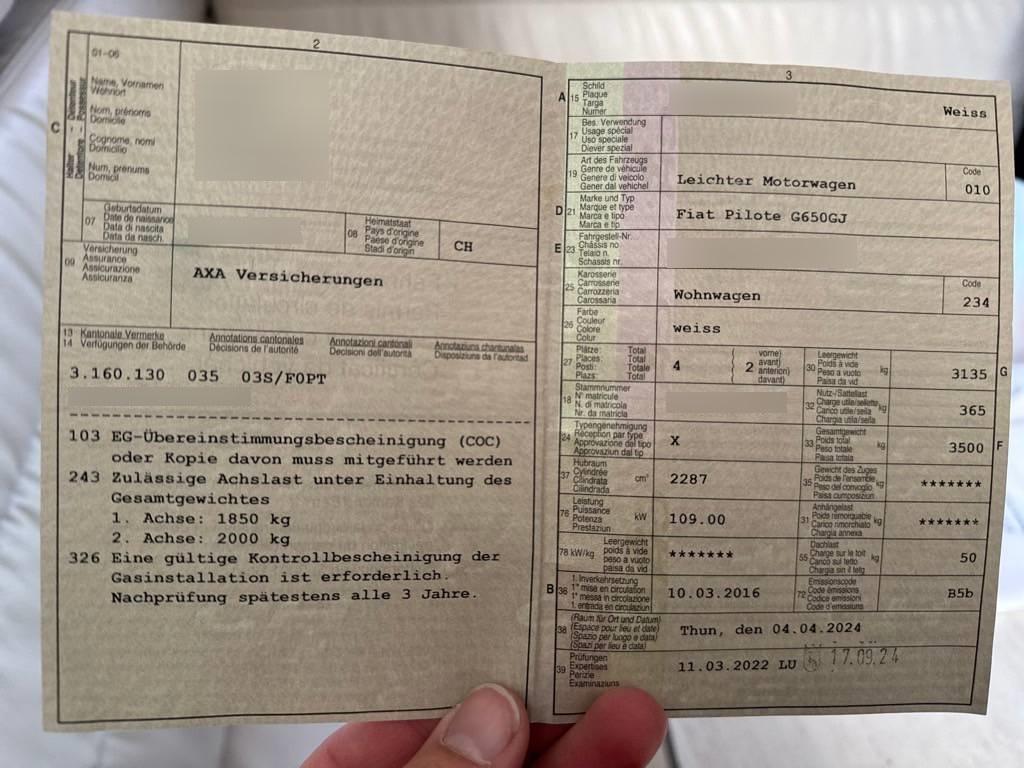 | Fahrzeugausweis | Vorhanden |