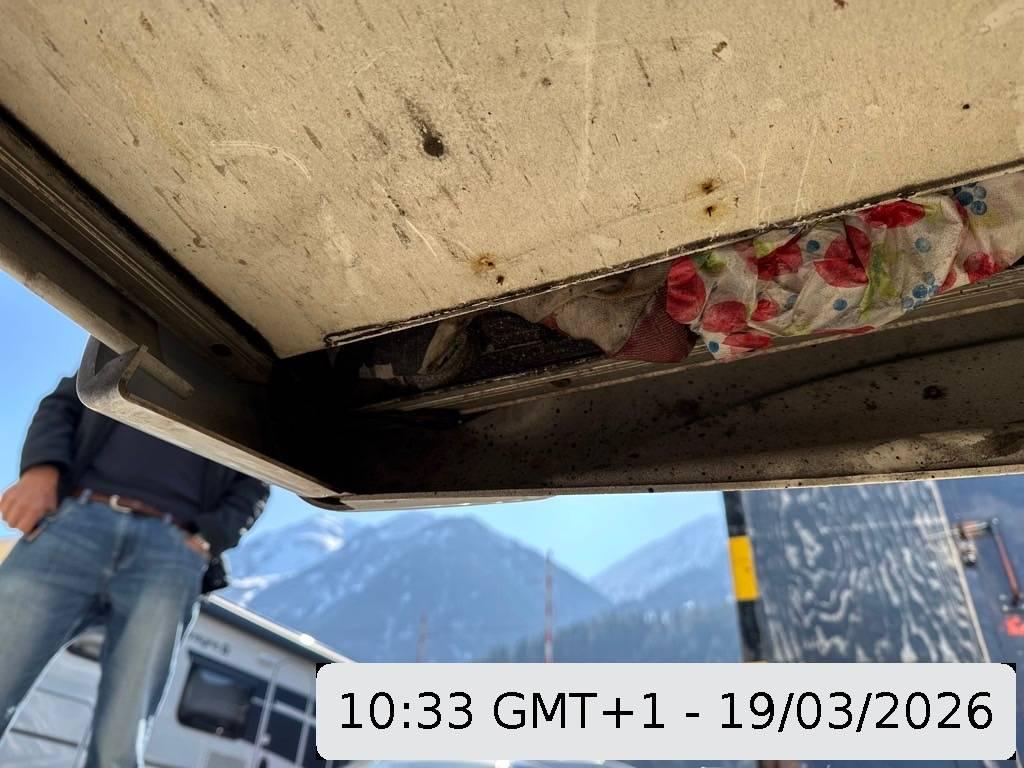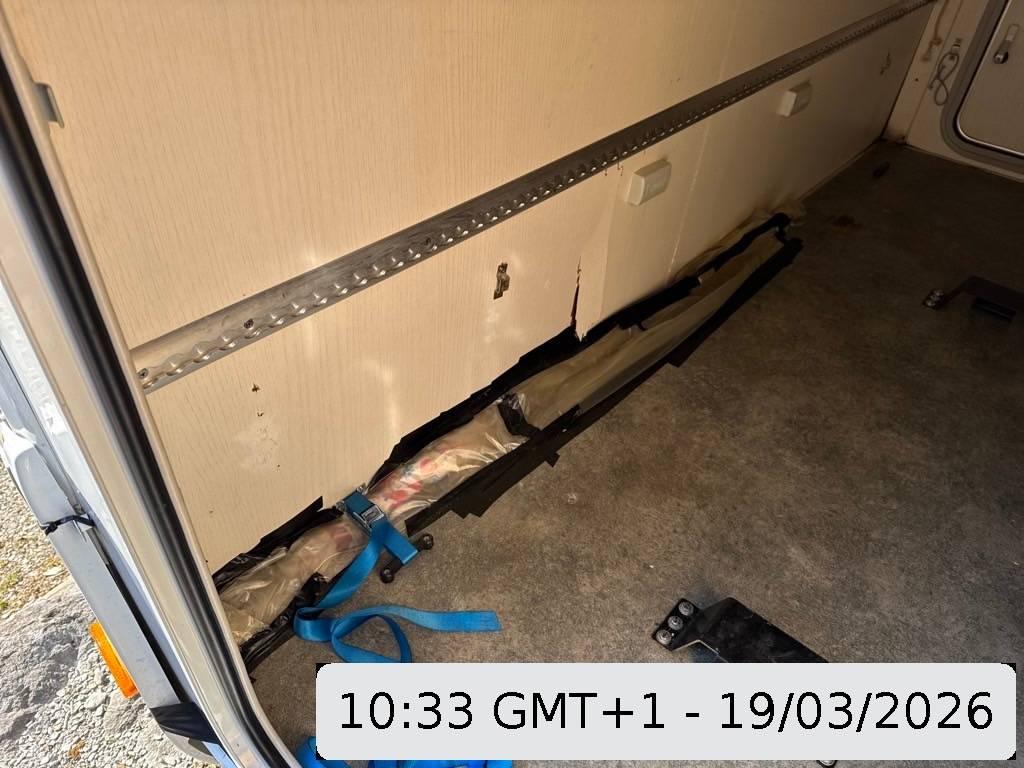 Die Rückwand wurde hinten rechts unten durch das überfahren eines Pfostens nach hinten weg gerissen.