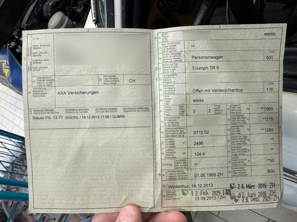 | Fahrzeugausweis | Vorhanden |
