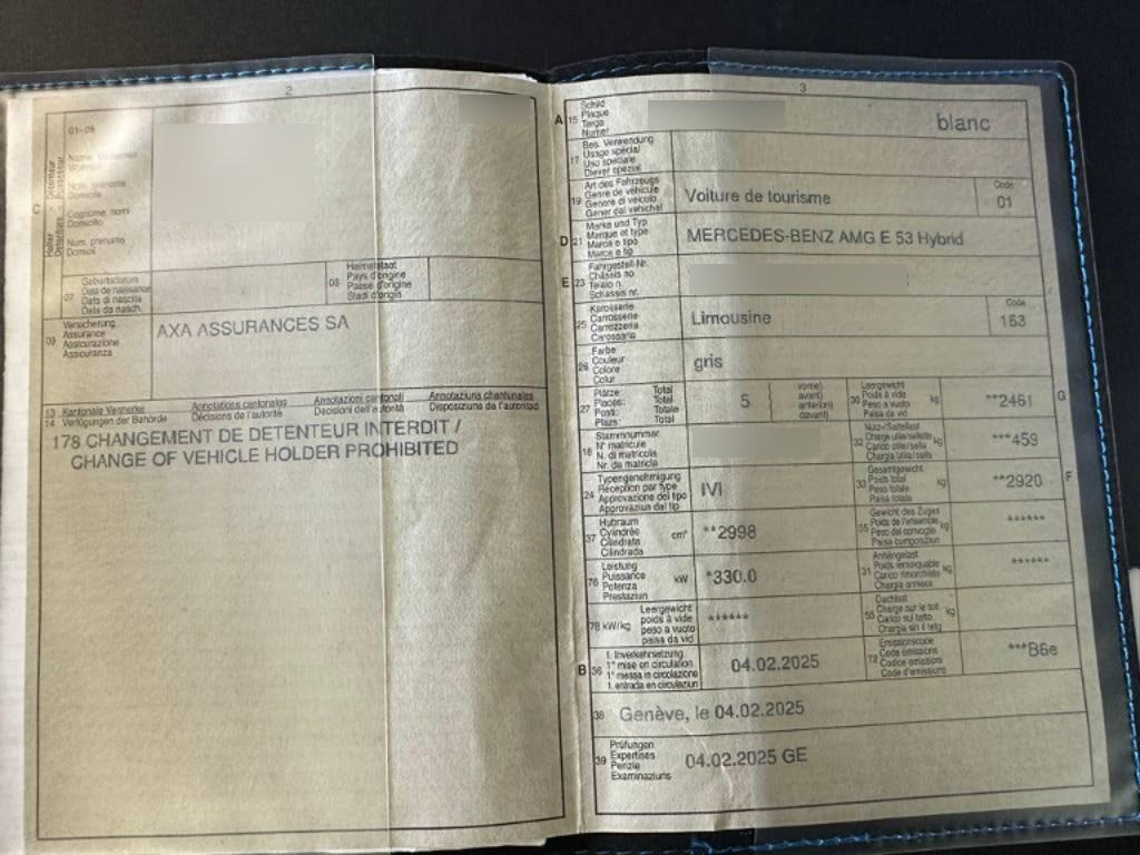 Assist: PRE-SAFE System, Assist: Totwinkel-Assistent, Dekor: MANUFAKTUR Sicherheitsgurte rot, Sitze: Komfortsitze vorne, Assist: Aktiver Parkassistent inkl. PARKTRONIC, Assist: Mercedes-Benz Notrufsystem, Assist: ATTENTION ASSIST, MERCEDES-BENZ MOBILITÄT Eines fährt in Ihrem neuen Fahrzeug immer mit: das Gefühl, sicher unterwegs zu sein. Sollten Sie dennoch eines Tages Hilfe benötigen, ist der Mercedes-Benz Service24h unter, Lenkrad: Multifunktionslenkrad in Leder Nappa mit Speichen in Schwarz hochglänzend, Umrahmung in Silberchrom sowie galvanisierten Lenkradschaltpaddles in Silberchrom, Servolenkung, Ladekabel für Industriesteckdose, 5m, glatt, Sitze: 4-Wege-Lordosenstütze, Paket: Spiegel-Paket, Licht: LED High Performance-Scheinwerfer, Getriebe: AMG SPEEDSHIFT TCT 9G, Elektrische Fensterheber vorne, AMG Spoilerlippe, Fahrwerk: Hinterachslenkung, Räder: AMG Leichtmetallräder 5-Doppelspeichen-Design 19J VA 255/45 R19 HA 285/40 R19, Kühlerverkleidung mit mittigem Mercedes-Benz Stern und Umrahmung, Mercedes-Benz Dekor sowie Zierelement in Chrom auf der Einzellamelle, Airbag: Kneebag, Airbag: Window-Kopfairbags, Sitze: Sportsitze, Media: Digitales Radio (DAB), Zentralverriegelung mit Fernbedienung, Lackierung: Uni-Lackierung, Ladekabel für Wallbox und öffentliche Ladestationen, 5 m, glatt, 11 kW, AMG Styling, Kopfstützen, Progressives, dynamisches Design von Front- und Heckschürze, beide mit Zierleisten in Chrom, dazu stilisierte Lufteinlässe vorn, Klima: Klimatisierungsautomatik THERMATIC, KEYLESS-GO, AMG Fussmatten, Wechselstromsystem (AC-Laden), Assist: Rückfahrkamera, Polster: Polster Ledernachbildung ARTICO/Stoff Ljusdal schwarz, Ablage-Paket, Powerdomes auf Motorhaube, Airbag: Automatische Beifahrerairbag-Abschaltung, Fahrwerk: AGILITY CONTROL-Fahrwerk mit selektivem Dämpfungssystem, Dekor: AMG Zierelemente Holz Esche schwarz offenporig, beleuchtet, Assist: Aktive Abstands-Assistent DISTRONIC, Fahrwerk: AMG DYNAMIC SELECT Mit den Fahrprogrammen von AMG DYNAMIC SELECT haben Sie Ihren persönlichen Renningenieur an Bord. Je nach Situation oder Laune intensivieren Sie den sportlichen Charakter Ihres Fahrzeugs. Dabei gibt es neben den vordefinierten Setups auch individuell wählbare Kombinationen - etwa einen dynamisch ausgelegten Antrieb bei komfortablem Lenkgefühl., Dekor: Innenhimmel Stoff nevagrau, Dekor: Instrumententafel und Bordkanten in Ledernachbildung ARTICO in Nappaoptik, Licht: Ambientebeleuchtung mit Projektion des Markenlogos, Mercedes-AMG Exterieur, Elektronisches Stabilitäts-Programm (ESP), Antiblockiersystem (ABS), Dekor: Mittelkonsole Holz Esche grau offenporig, Paket: Ablage-Paket, Licht: Drittes Bremslicht, Remote und Charging Services Plus, Bremssattel silberfarben lackiert, Lackierung: Metallic-Lackierung Obsidianschwarz, Paket: Sitzkomfort-Paket, Media: MBUX Multimediasystem Premium, Dekor: Dachhimmel in schwarz, Ambientebeleuchtung, Airbag: Seitenairbag für Fahrer und Beifahrer, Airbag: Airbag Fahrer und Beifahrer, Lenkrad: AMG Performance Lenkrad in Leder Nappa, Fahrwerk: AMG RIDE CONTROL Fahrwerk Das AMG RIDE CONTROL Fahrwerk ist Ihr Schlüssel zu überlegener Performance im Alltag und auf der Rennstrecke. Die adaptive Dämpfung bietet eine breite Spreizung zwischen komfortablem und sehr sportlichem Setup. Sie wählen zwischen Comfort, Sport oder Sport+ mit nur einem Bedienvorgang und die Fahrwerks-Charakteristik verändert sich sofort., Elektronische Traktionskontrolle (ASR/TCS), Mercedes-AMG Interieur, KEYLESS-GO mit versenkbaren Türgriffen, MERCEDES-SWISS-INTEGRAL - Sämtliche Reparaturen (auch Verschleiss) bis 3 Jahre oder 100 000 Kilometer (es gilt das zuerst Erreichte). - Kostenlose Servicearbeiten und hierfür benötigte Originalteile (exklusive Flüssigkeiten) bis 100 000 Kilometer oder maximal 10 Jahre (es gilt das zuerst Erreichte).