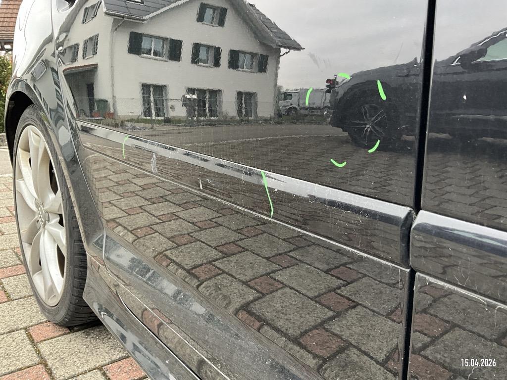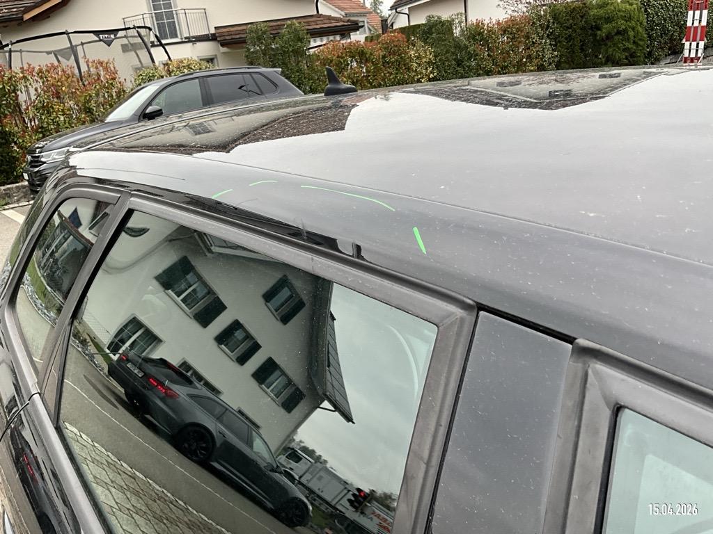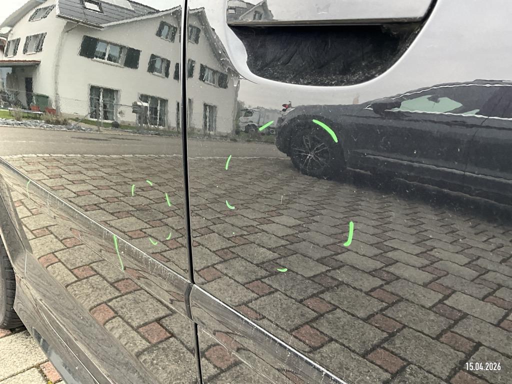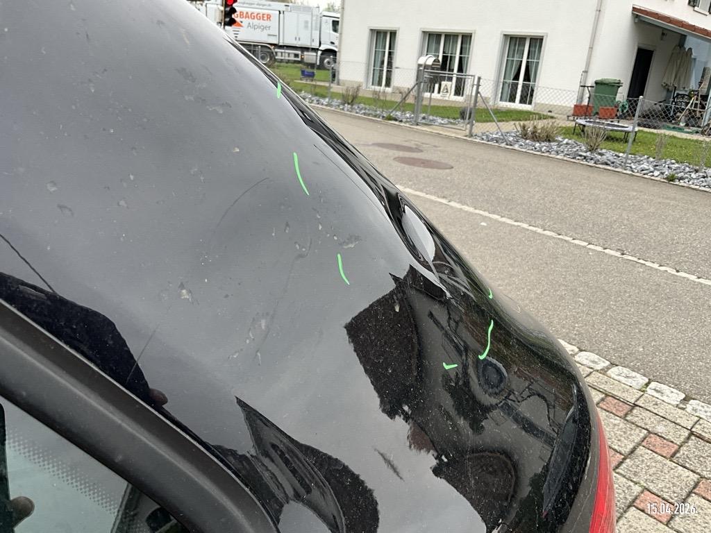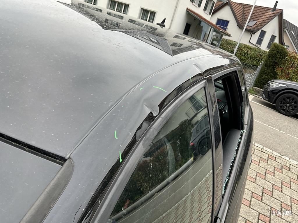 | Schadensbeschreibung | Motorhaube 2 Dellen, Aussenspiegel L+R abgebrochen, Tür VL Delle, Tür HL 2 Dellen, Dachrahmen L 2 Dellen, Dachrahmen R Delle, Türscheibe HL zerschlagen, D-Säule L Delle, Tür VR Delle/Kratzer, Türscheibe VR zerkratzt, Heckklappe 2 Dellen, Stossstange H eingedrückt/zerkratzt - AUFZÄHLUNG NICHT ABSCHLIESSEND / Vorschaden: Kotflügel VR eingedrückt/zerkratzt, Tür HR Delle, Türzierleiste HR zerkratzt/blättert ab, Gebrauchsspuren |