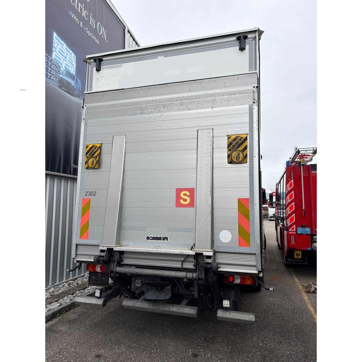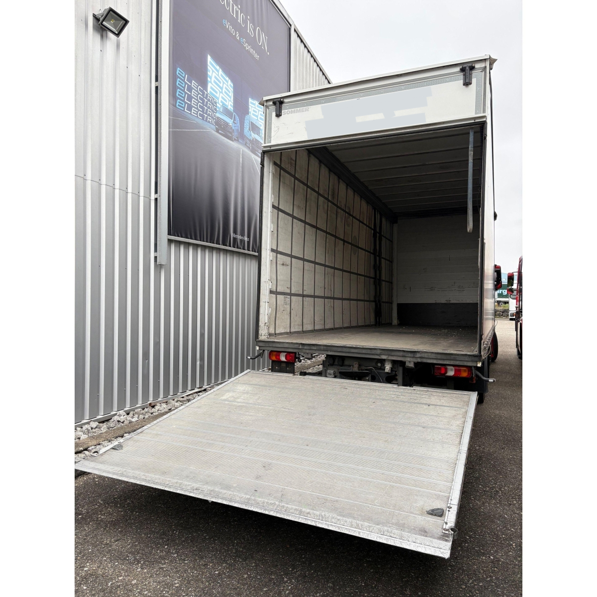 Lichtmass: Ladefläche 7550 mm lang / 2480 mm breit / 2950 mm hoch, Hebebühne Mammut MPJ-B-CU 2.5 Tonnen Plattform 2435 mm lang 2520 mm breit
