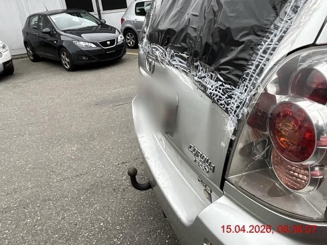 | Schadensbeschreibung | Beschreibung der Schäden: Heckdeckel, Stossfänger hinten deformiert. Heckscheibe eingeschlagen. Heckleuchte rechts gespalten. Vorbestandene Schäden: Seite rechts: Seitentür hinten rechts zerkratzt Vorne mitte: Loch in Stossfänger vorne Seite links: Türverkleidung gerissen hinten links |