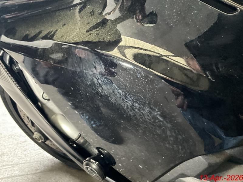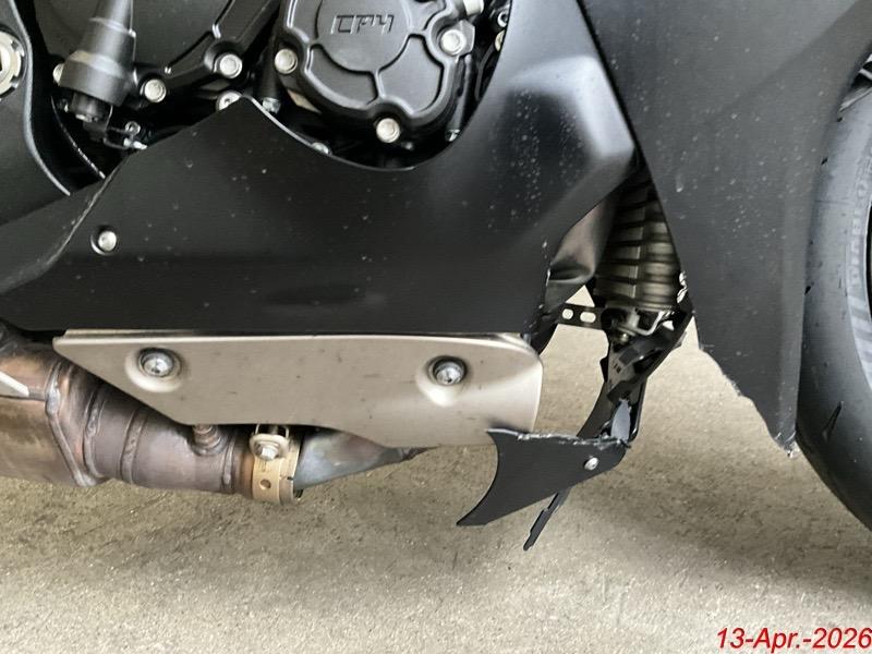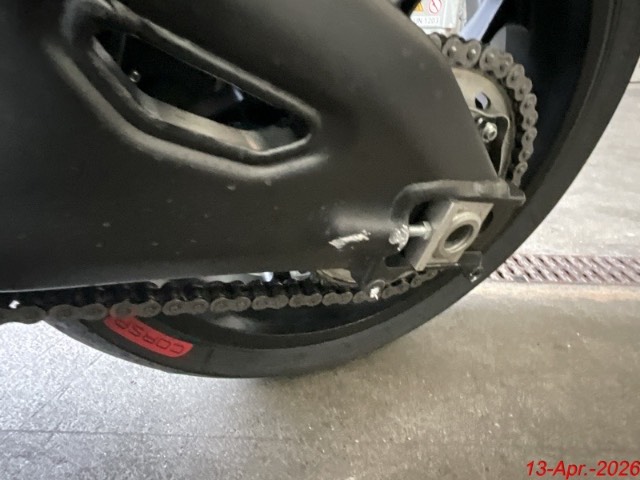 | Schadensbeschreibung | Beschreibung der Schäden: Die Felge hinten, die Hinterachsschwinge, die Fussrasten links, der Schalthelbel, der Auspuff komplett, der Motordeckel, der Wasserkühler, der Ölkühler sind deformiert. Die Seitenverkleidungen vorne rechts und links, der Rückspiegel, der Bremshebel haben Kratzer. |