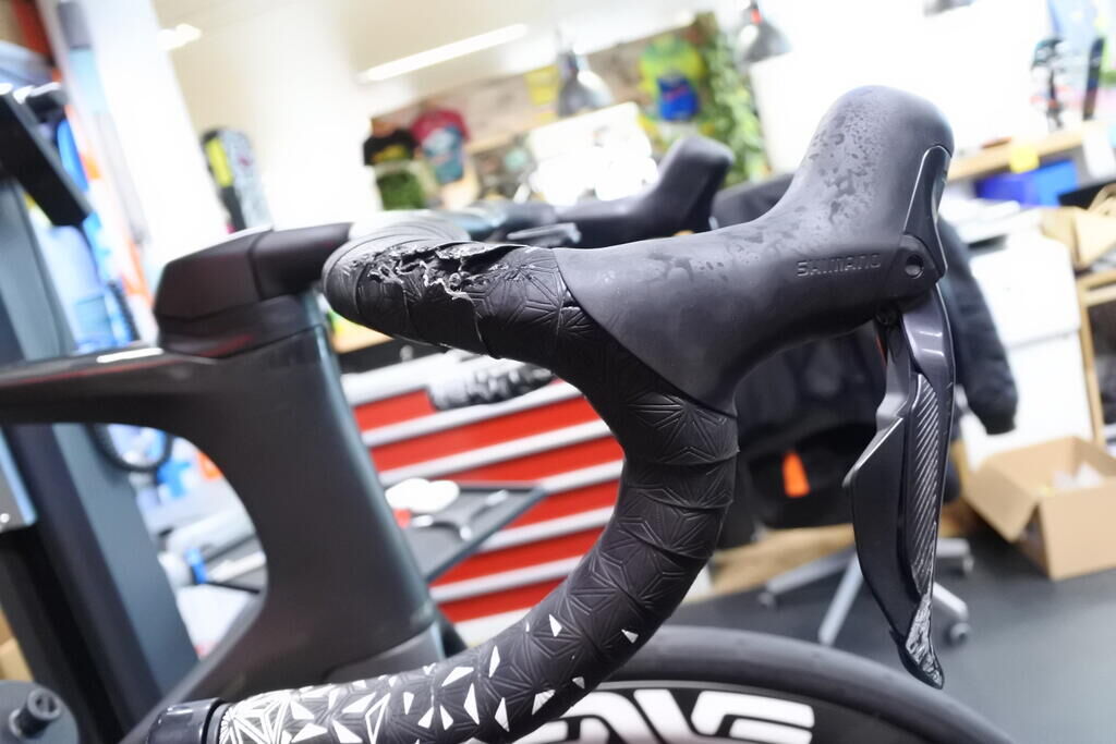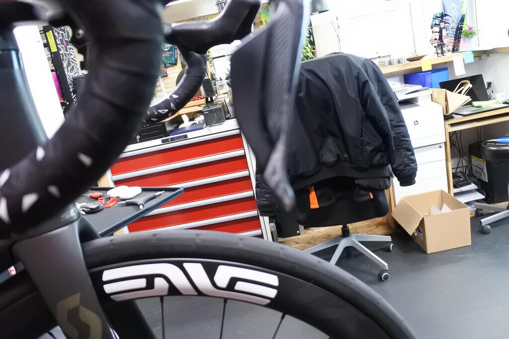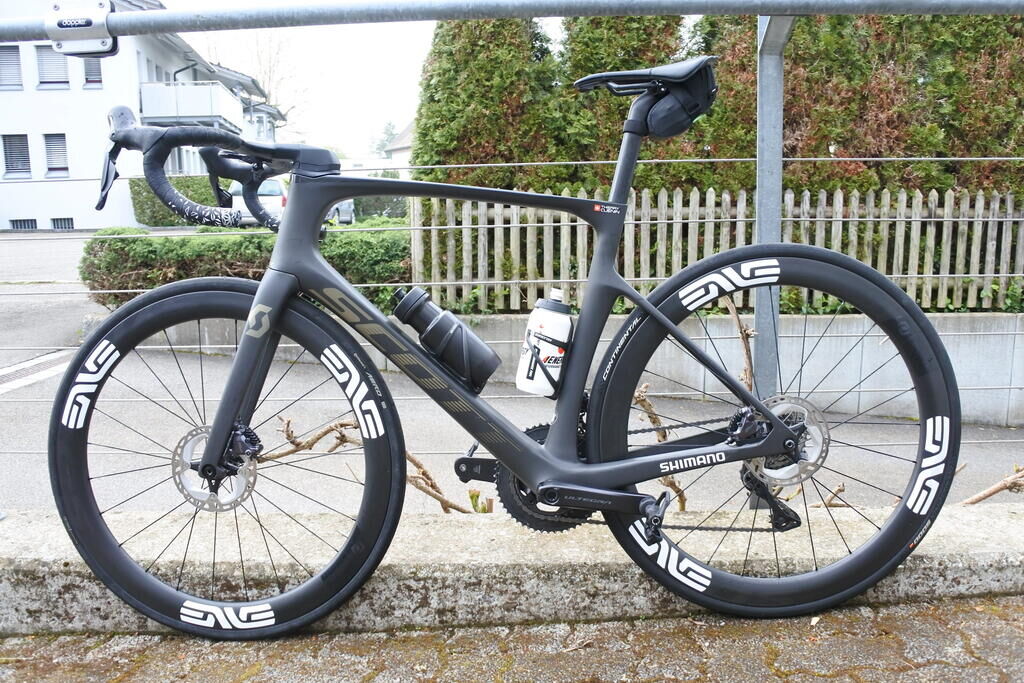 | Bidonhalterungen und Halterung für Navi werden demontiert. Pedalen werden durch normale Klickpedalen ersetzt. | |