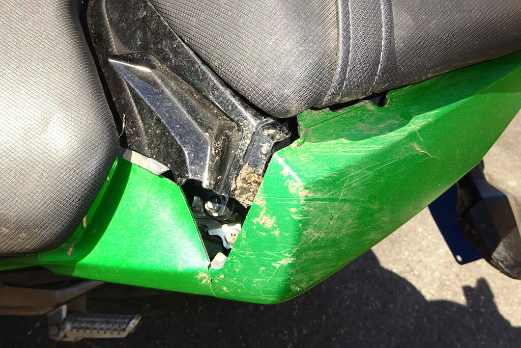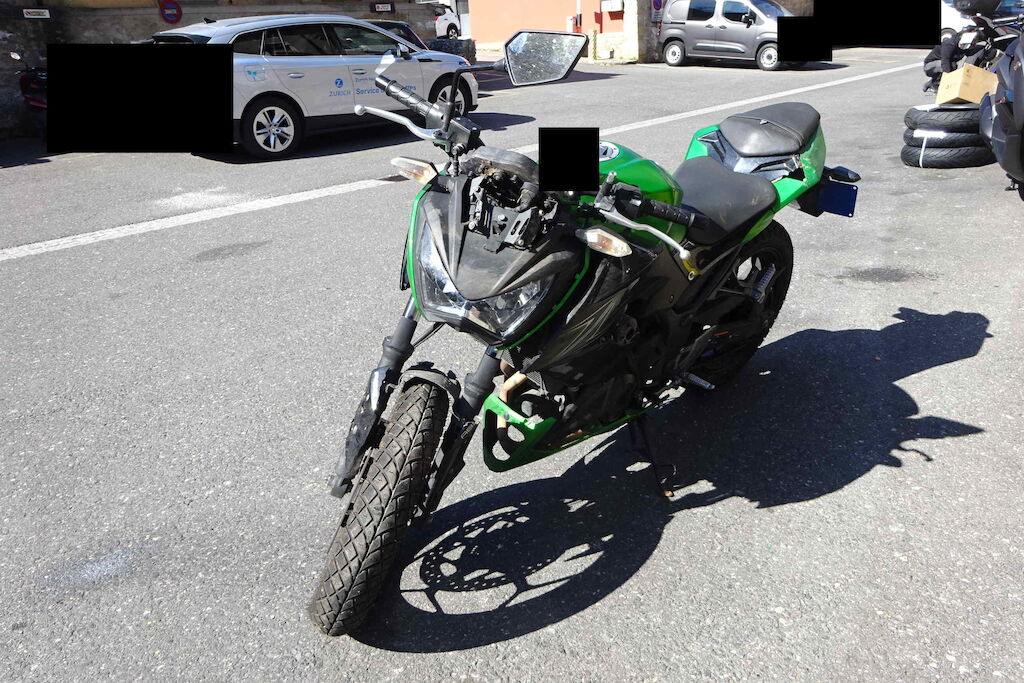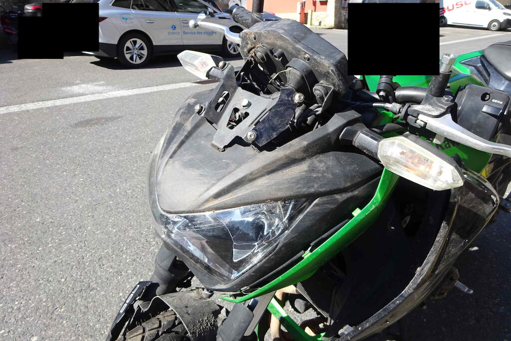 | Opis uszkodzen: | Guidon, rétro, réservoir, fourche, garde-boue, phare, carénage, séleécteur de vitesse et lévier endommagés |