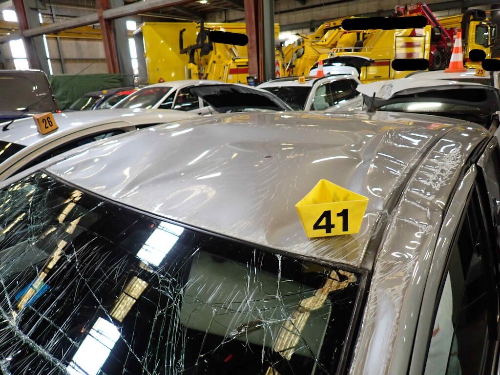 | Opis uszkodzen: | - Motorhaube sehr stark deformiert - Frontscheibe gebrochen - Dach und Dachrahmen links & rechts extrem stark deformiert - Scheinwerfer VR zerkratzt - Seitenscheibe VR gebrochen - Aussenspiegel rechts gebrochen - Rechte Seite sehr stark deformiert - Stosstange HL gerissen - Hinterachse und Aufhägung gebrochen - Linke Seite extrem stark deformiert - Kopfairbag Fahrerseite ausgelöst - Seitenairbag und Gurtstraffer VL ausgelöst |