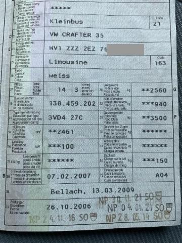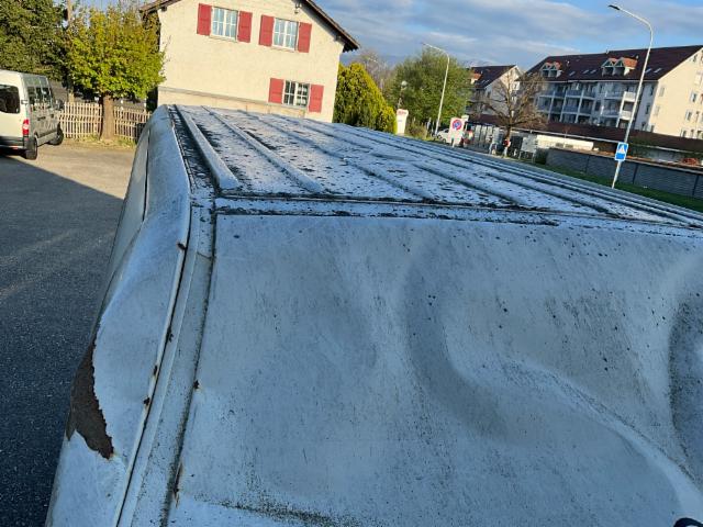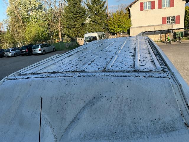 Wichtige HinweiseBereifungFahrzeug wird mit Winterräder abgegeben. BeschädigungenDach Dach eingedrückt. Sonstige Schäden Div.Carrosserie Teile sind leicht beschädigt. Div. Roststellen am Fahrzeug. Lackierung matt [stumpf, beschädigt]. AusstattungSerienaustattung Airbag Fahrerseite Elektrische Fensterheber vorne Aussenspiegel elektrisch verstellbar und beheizbar Servolenkung Elektronische Wegfahrsperre Zentralverriegelung mit Fernbedienung Dachantenne ESP Elektronisches Stabilitätsprogramm Wärmeschutzverglasung ABS + ASR Keine Gewähr auf die Angaben der Serienausstattungen SonderausstattungAirbag Beifahrerseite Park-Distanz-Sensor vorne + hinten Beifahrer Doppelsitzbank Schiebefenster im Laderaum vorne links Warmluftkanal im Lade-/ Fahrgastraum Elektronischer Fahrtenschreiber Fenster fix im Laderaum hinten links Fenster fix im Laderaum hinten rechts Fahrerschwingsitz Schiebefenster im Laderaum vorne rechts Gepäcknetz an der Heckflügeltür Klimaanlage halbautomatisch vorne Radio/ CD RCD 2001 Frontscheibe mit Colorstreifen am oberen Rand 2 Leseleuchten im Fahrerhaus |