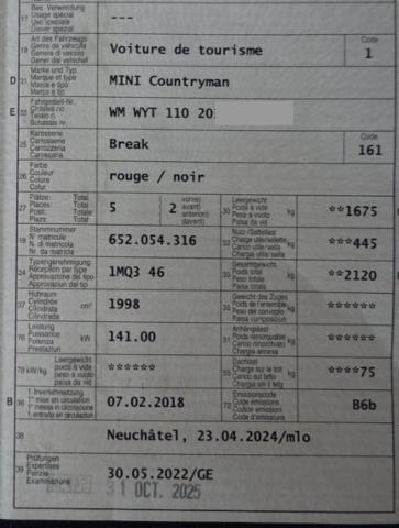 | Typ: | 2.0i Cooper S SAG ALL4 | Moc: | 141 kW |