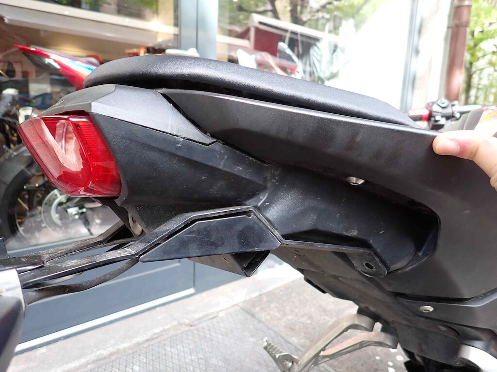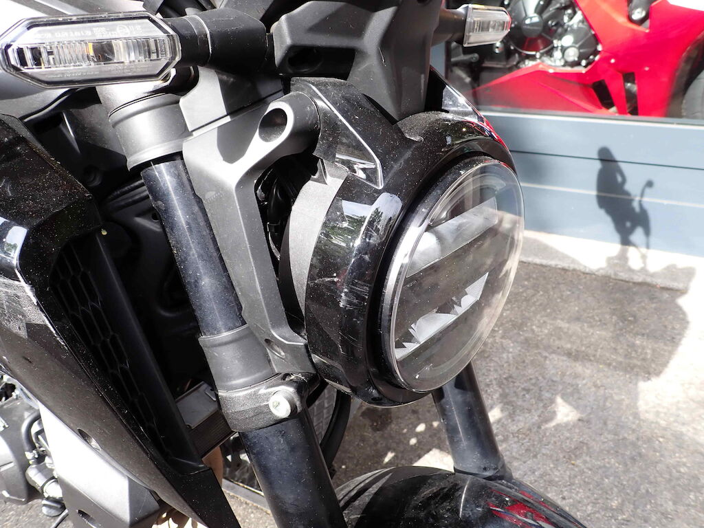 | Opis uszkodzen: | Choc avant + chute sur flanc droit (véhicule stationné): garde-boue avant, cache de phare, guidon, rétroviseur droit, carénages avant, carénages arrière, repose-pieds avant et arrière droit, pédale de frein arrière, selle, pot d'échappement, endommagés. |