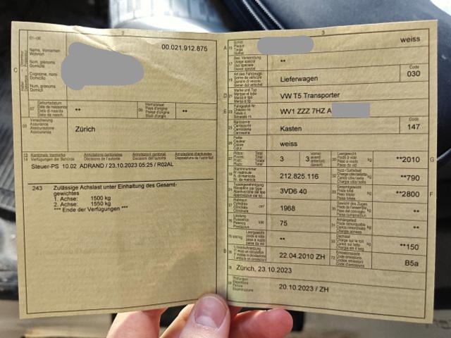 | VIN | WV1ZZZ7HZAH****** | Reifenprofil in %: | |