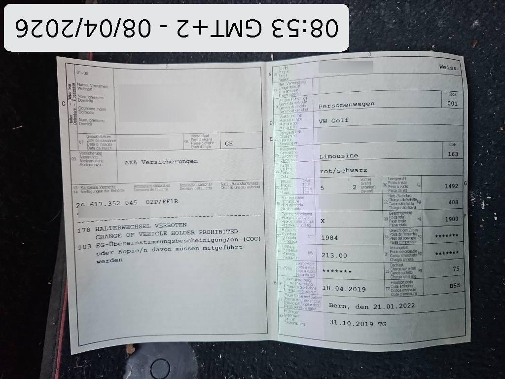 | Fahrzeugausweis | Vorhanden |