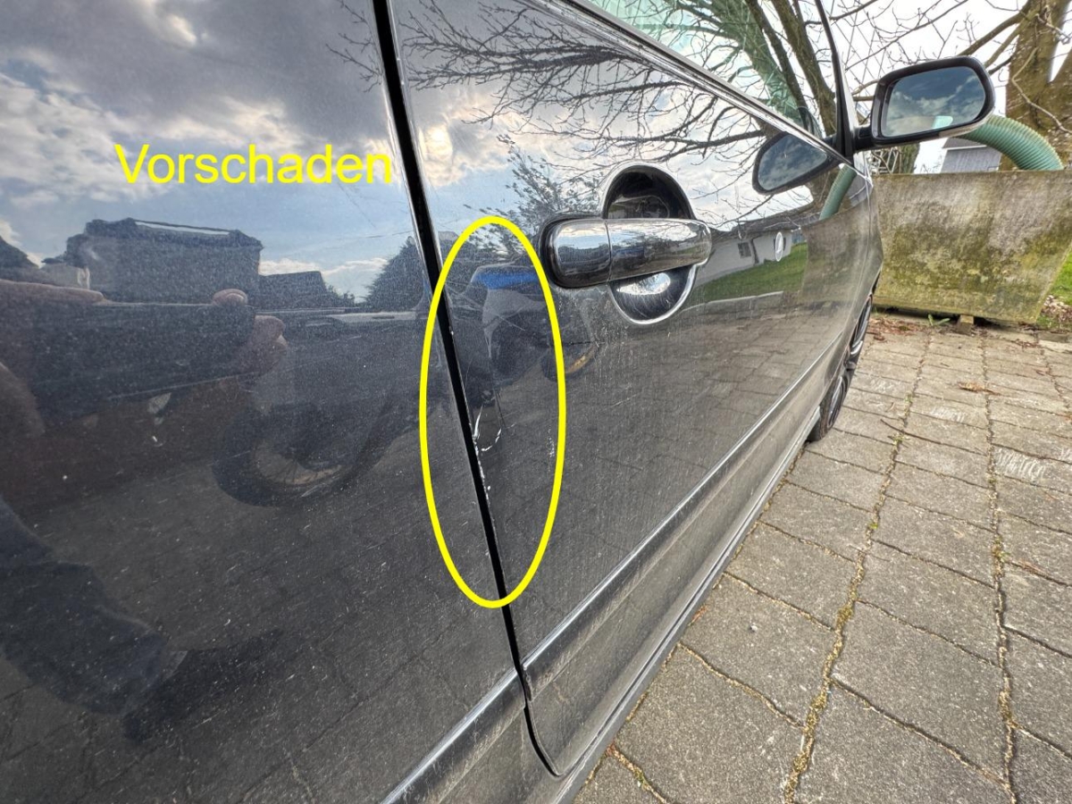 Das Fahrzeug hat rundum kleine Dellen, Beulen und Lackschäden, Rad hinten links, Rad hinten rechts, Rad vorne links, Rad vorne rechts, Seitenwand rechts, Stossstange hinten, Stosstange vorne, Türe vorne rechts